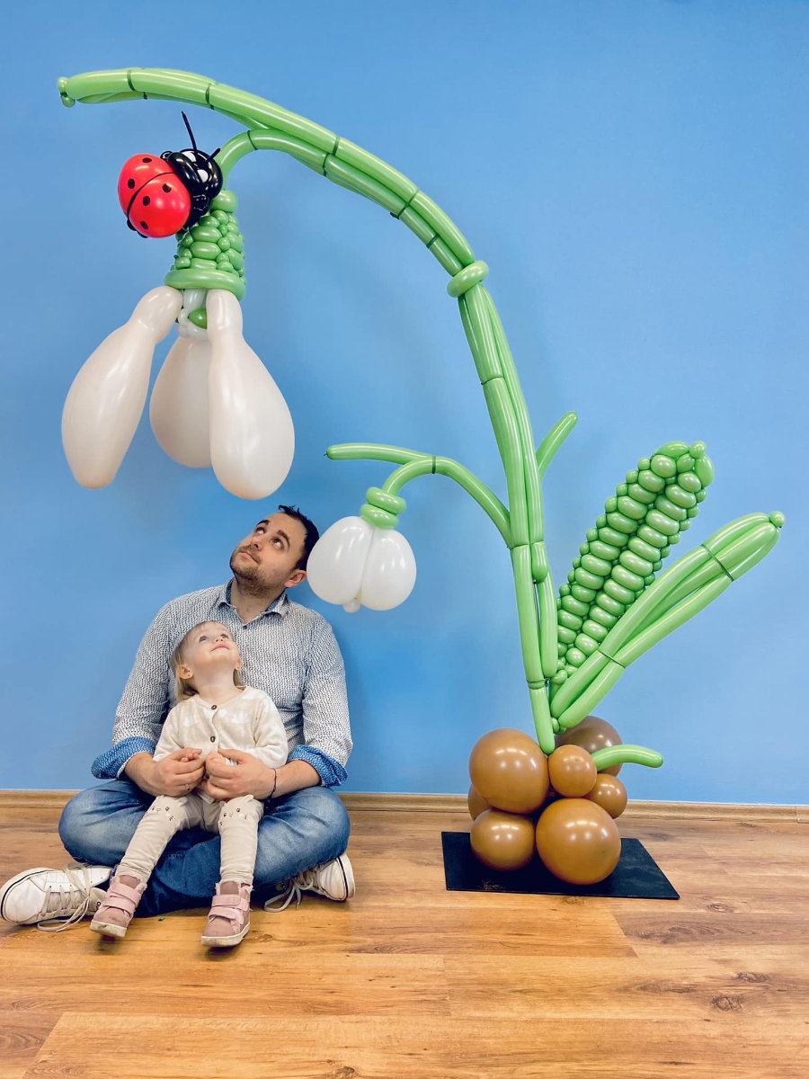 Például Olaszországban csináltunk egy óriás illusztrációt lufiból az égigérő paszuly meséhez. Az óriás feje nehezebb lett, mint gondoltam. Nem bírta el az oldalsó függesztés, ezért vagy alulról kellett megtámasztani vagy az oldalsót megerősíteni. De addigra már majdnem készen voltunk, és találgatni kellett, melyik okozza a legkisebb “kárt” a már kész installációban.