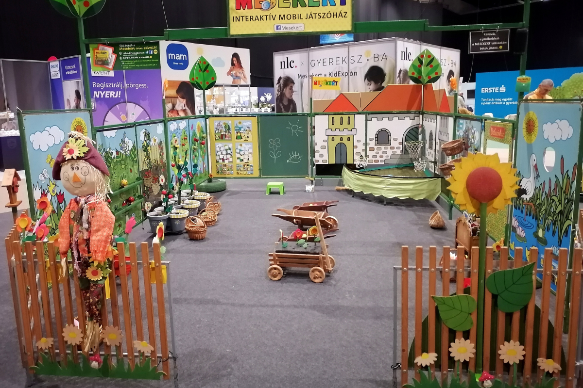 A Mesekert egy tevékenységközpontú, interaktív játékelemeket tartalmazó mobil játszóudvar.